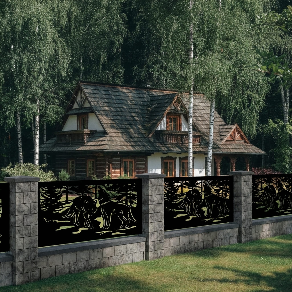 Panel Ogrodzeniowy – Dwa Wilki w Lesie – Wzór "2185" – Kolekcja Natura – Na wymiar