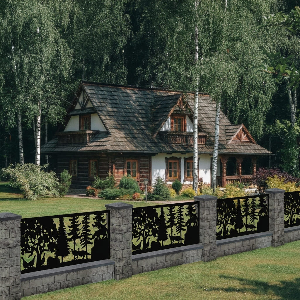 Panel Ogrodzeniowy Metalowy – Bogaty Motyw Leśny ze Zwierzętami – Wzór "2026" – Cięcie Laserowe na Wymiar