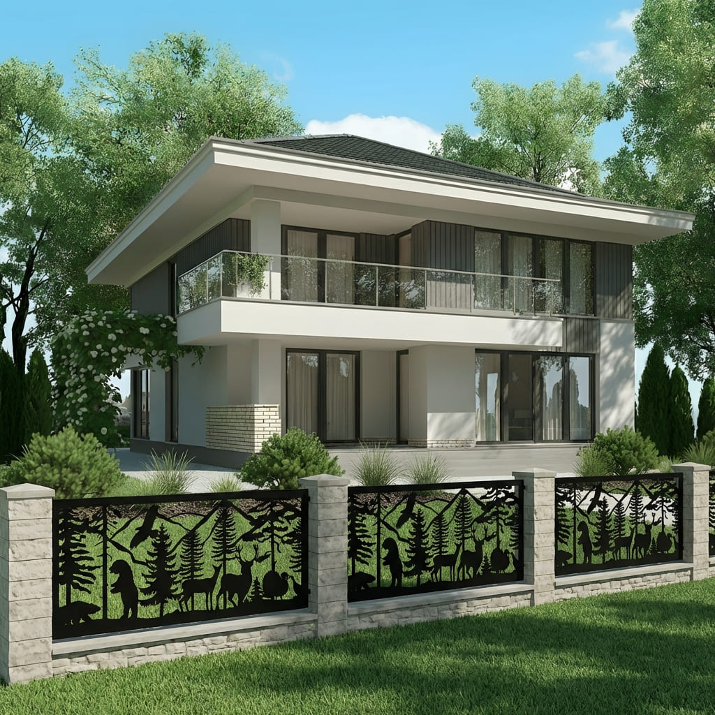 Nasze panele ogrodzeniowe z motywami zwierzęcymi wprowadzają do przestrzeni naturalną dynamikę i niepowtarzalny styl. Sylwetki zwierząt tworzą kompozycję, która przyciąga wzrok i nadaje posesji artystyczny charakter. Idealnie sprawdzają się jako przęsła, balustrady, zabudowy tarasów oraz nowoczesne obrazy ścienne – łącząc estetykę z funkcjonalnością, prywatnością oraz trwałością na lata.