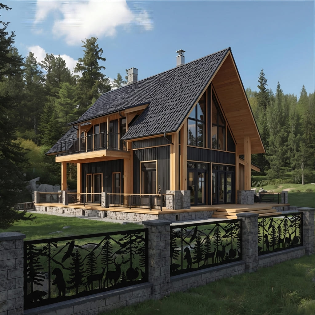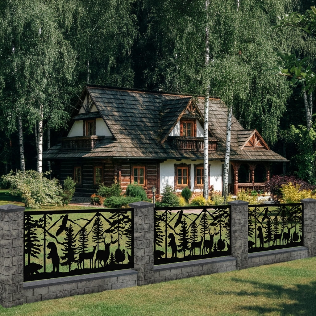 Panel Ogrodzeniowy Metalowy – Bogaty Motyw Leśny ze Zwierzętami – Wzór "2034" – Cięcie Laserowe na Wymiar