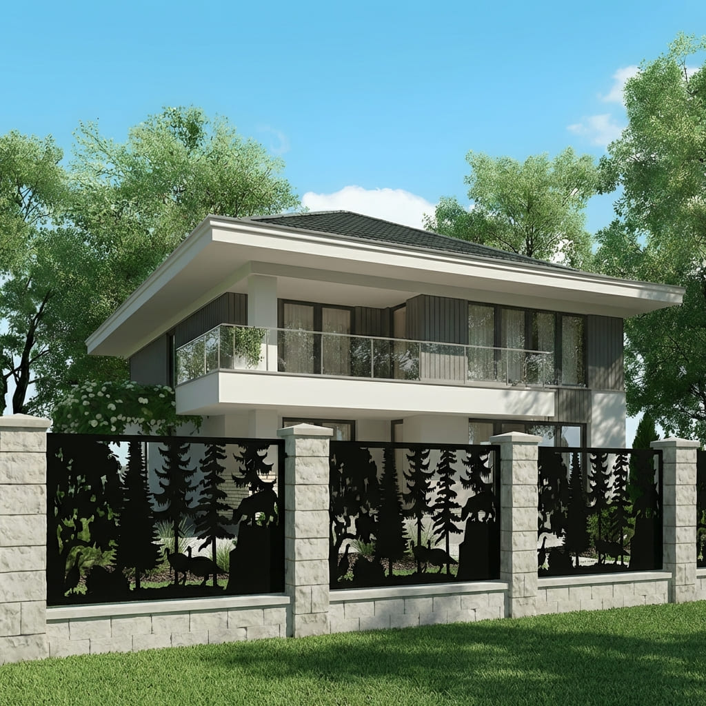 Nasze panele ogrodzeniowe z motywami zwierzęcymi wprowadzają do przestrzeni naturalną dynamikę i niepowtarzalny styl. Sylwetki zwierząt tworzą kompozycję, która przyciąga wzrok i nadaje posesji artystyczny charakter. Idealnie sprawdzają się jako przęsła, balustrady, zabudowy tarasów oraz nowoczesne obrazy ścienne – łącząc estetykę z funkcjonalnością, prywatnością oraz trwałością na lata.