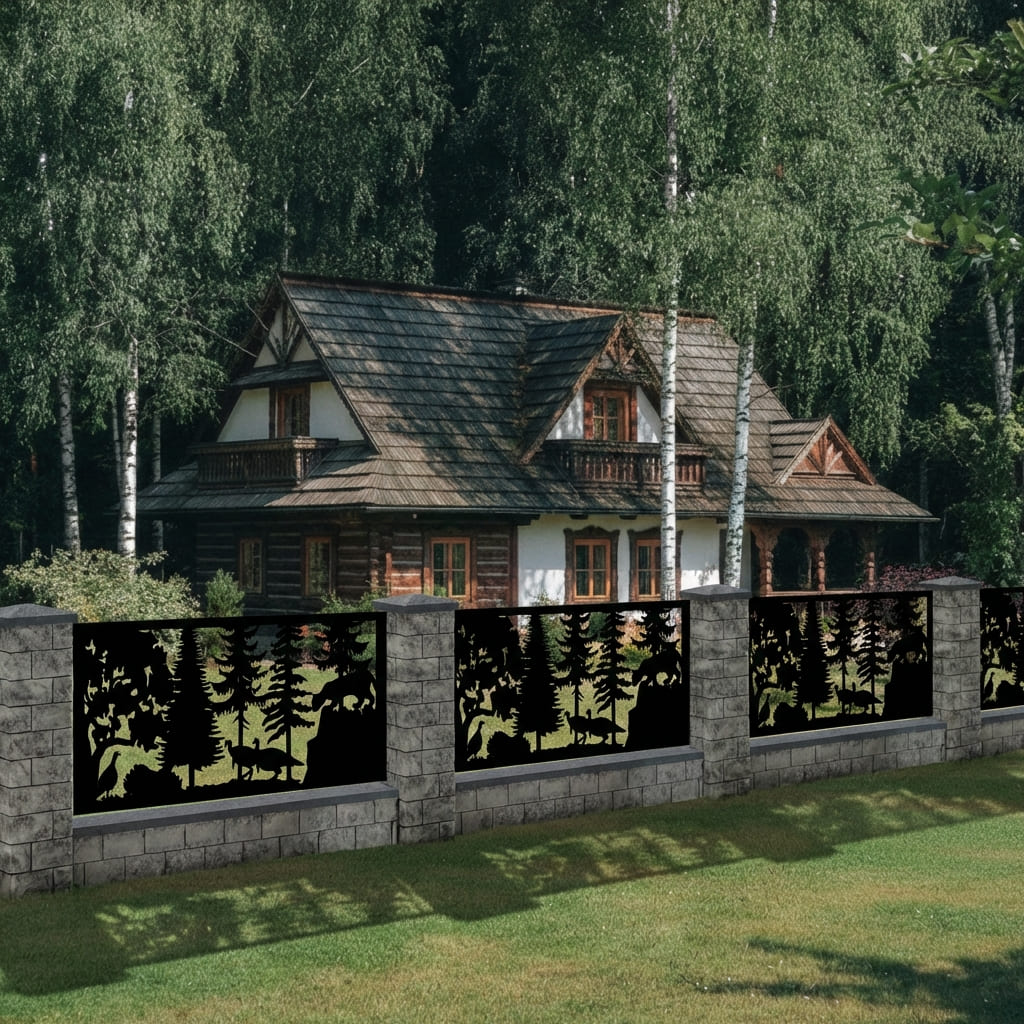 Panel Ogrodzeniowy Metalowy – Bogaty Motyw Leśny ze Zwierzętami – Wzór "2043" – Cięcie Laserowe na Wymiar