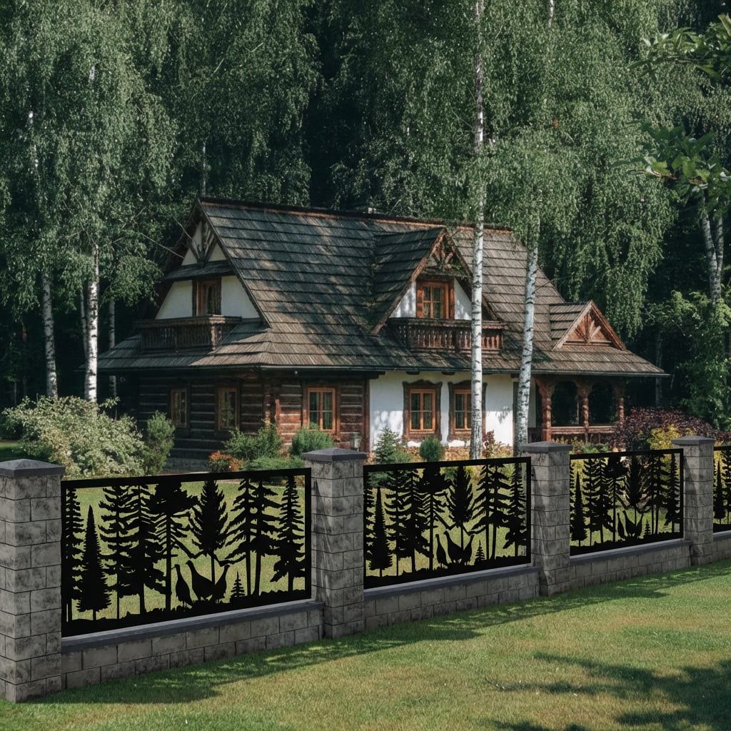 Panel Ogrodzeniowy Metalowy – Bogaty Motyw Leśny ze Zwierzętami – Wzór "2060" – Cięcie Laserowe na Wymiar