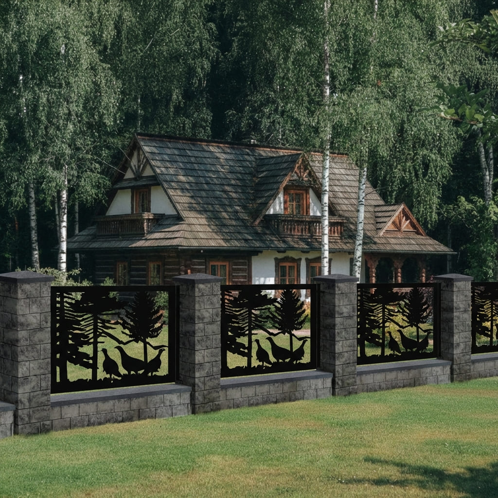 Nasze panele ogrodzeniowe z motywami zwierzęcymi wprowadzają do przestrzeni naturalną dynamikę i niepowtarzalny styl. Sylwetki zwierząt tworzą kompozycję, która przyciąga wzrok i nadaje posesji artystyczny charakter. Idealnie sprawdzają się jako przęsła, balustrady, zabudowy tarasów oraz nowoczesne obrazy ścienne – łącząc estetykę z funkcjonalnością, prywatnością oraz trwałością na lata.