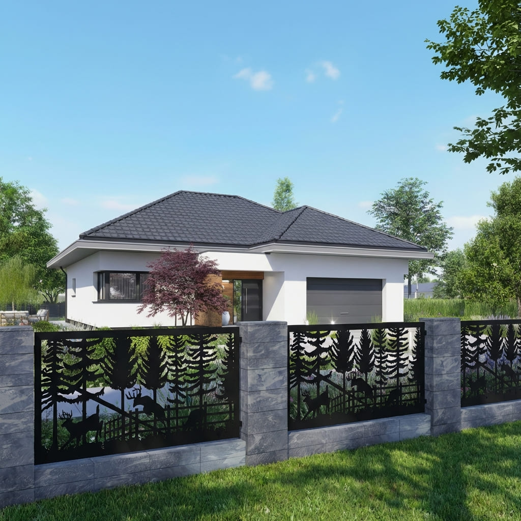 Nasze panele ogrodzeniowe z motywami zwierzęcymi wprowadzają do przestrzeni naturalną dynamikę i niepowtarzalny styl. Sylwetki zwierząt tworzą kompozycję, która przyciąga wzrok i nadaje posesji artystyczny charakter. Idealnie sprawdzają się jako przęsła, balustrady, zabudowy tarasów oraz nowoczesne obrazy ścienne – łącząc estetykę z funkcjonalnością, prywatnością oraz trwałością na lata.