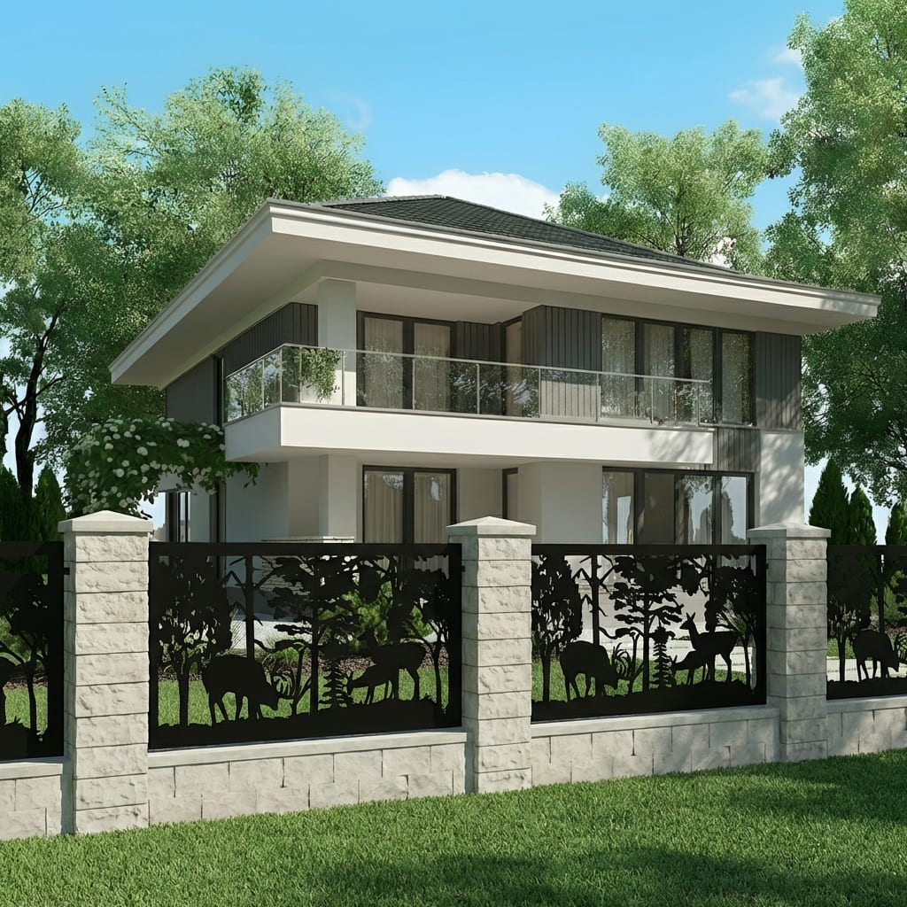 Nasze panele ogrodzeniowe z motywami zwierzęcymi wprowadzają do przestrzeni naturalną dynamikę i niepowtarzalny styl. Sylwetki zwierząt tworzą kompozycję, która przyciąga wzrok i nadaje posesji artystyczny charakter. Idealnie sprawdzają się jako przęsła, balustrady, zabudowy tarasów oraz nowoczesne obrazy ścienne – łącząc estetykę z funkcjonalnością, prywatnością oraz trwałością na lata.