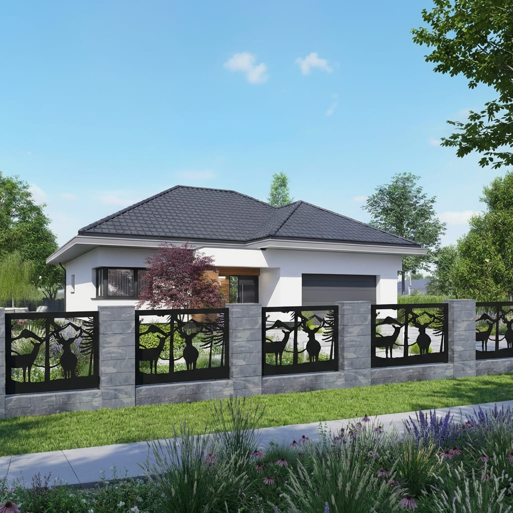 Nasze panele ogrodzeniowe z motywami zwierzęcymi wprowadzają do przestrzeni naturalną dynamikę i niepowtarzalny styl. Sylwetki zwierząt tworzą kompozycję, która przyciąga wzrok i nadaje posesji artystyczny charakter. Idealnie sprawdzają się jako przęsła, balustrady, zabudowy tarasów oraz nowoczesne obrazy ścienne – łącząc estetykę z funkcjonalnością, prywatnością oraz trwałością na lata.