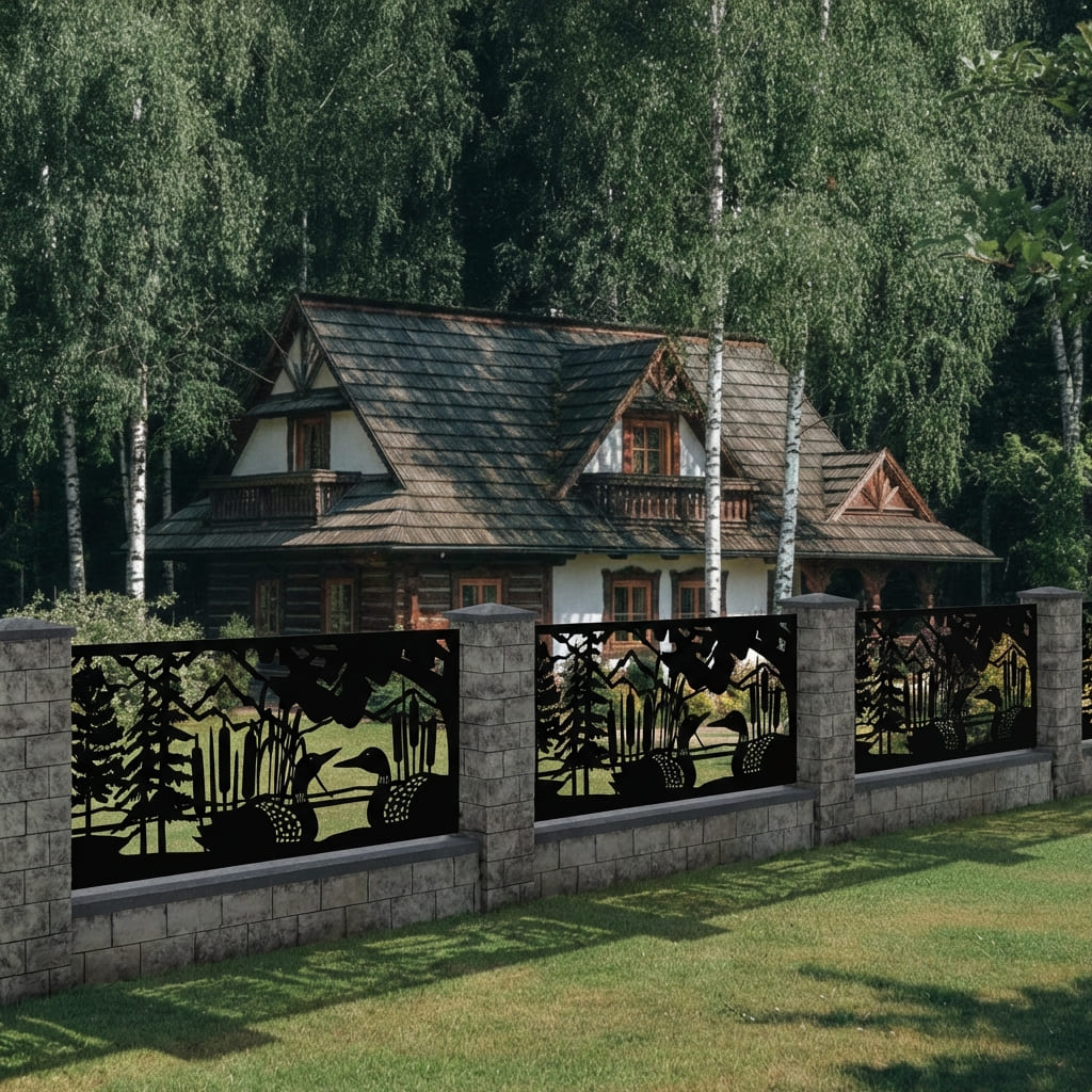 Panel Ogrodzeniowy Metalowy – Motyw Kaczki – Wzór "2064" – Dekoracyjny Panel Przyrodniczy– Cięcie Laserowe na Wymiar