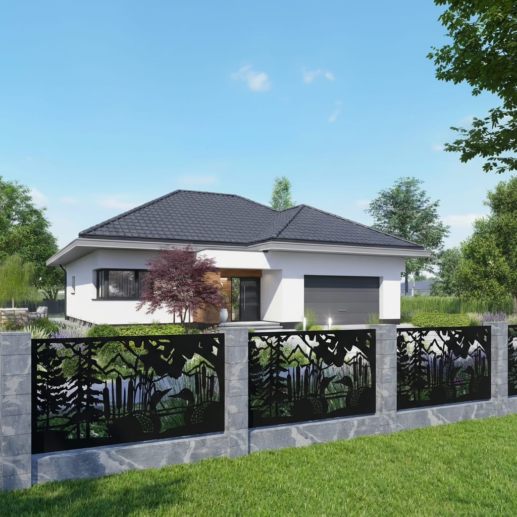 Nasze panele ogrodzeniowe z motywami zwierzęcymi wprowadzają do przestrzeni naturalną dynamikę i niepowtarzalny styl. Sylwetki zwierząt tworzą kompozycję, która przyciąga wzrok i nadaje posesji artystyczny charakter. Idealnie sprawdzają się jako przęsła, balustrady, zabudowy tarasów oraz nowoczesne obrazy ścienne – łącząc estetykę z funkcjonalnością, prywatnością oraz trwałością na lata.