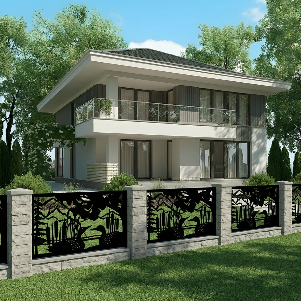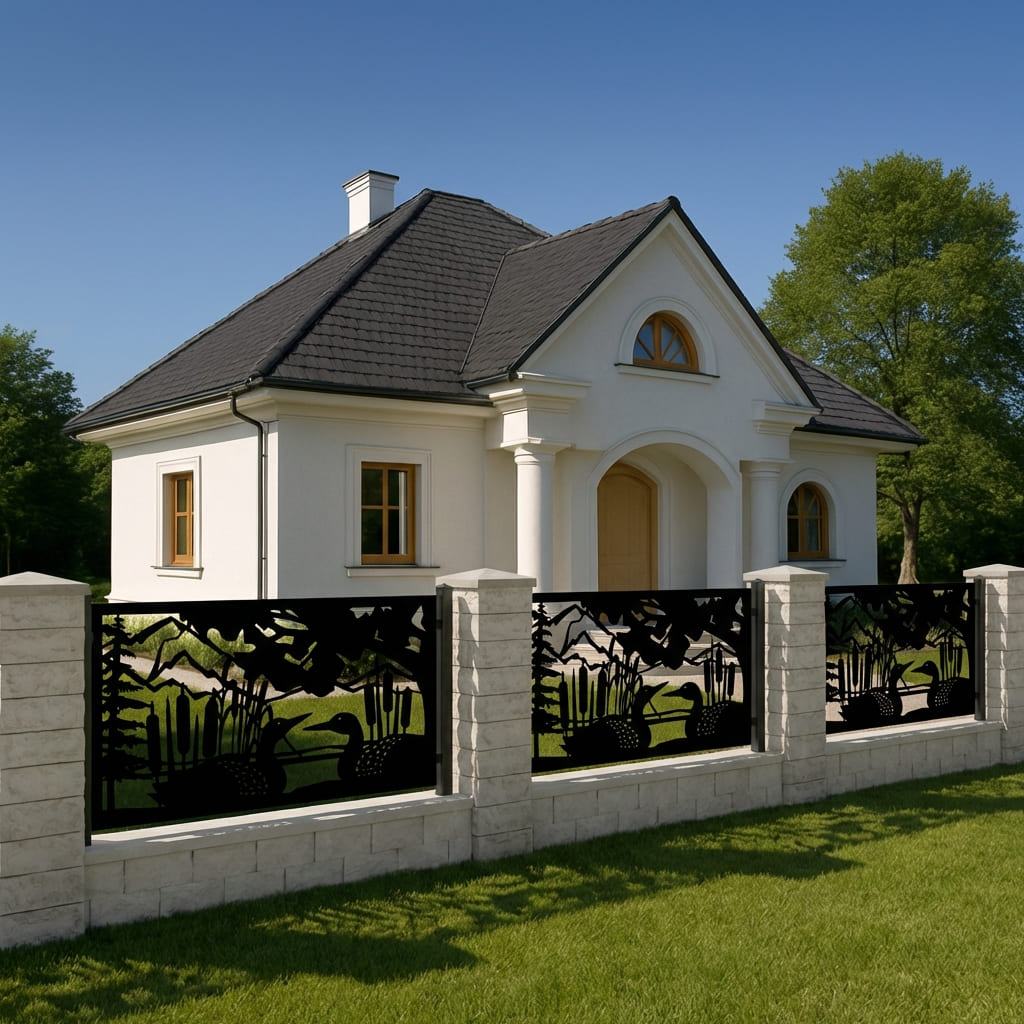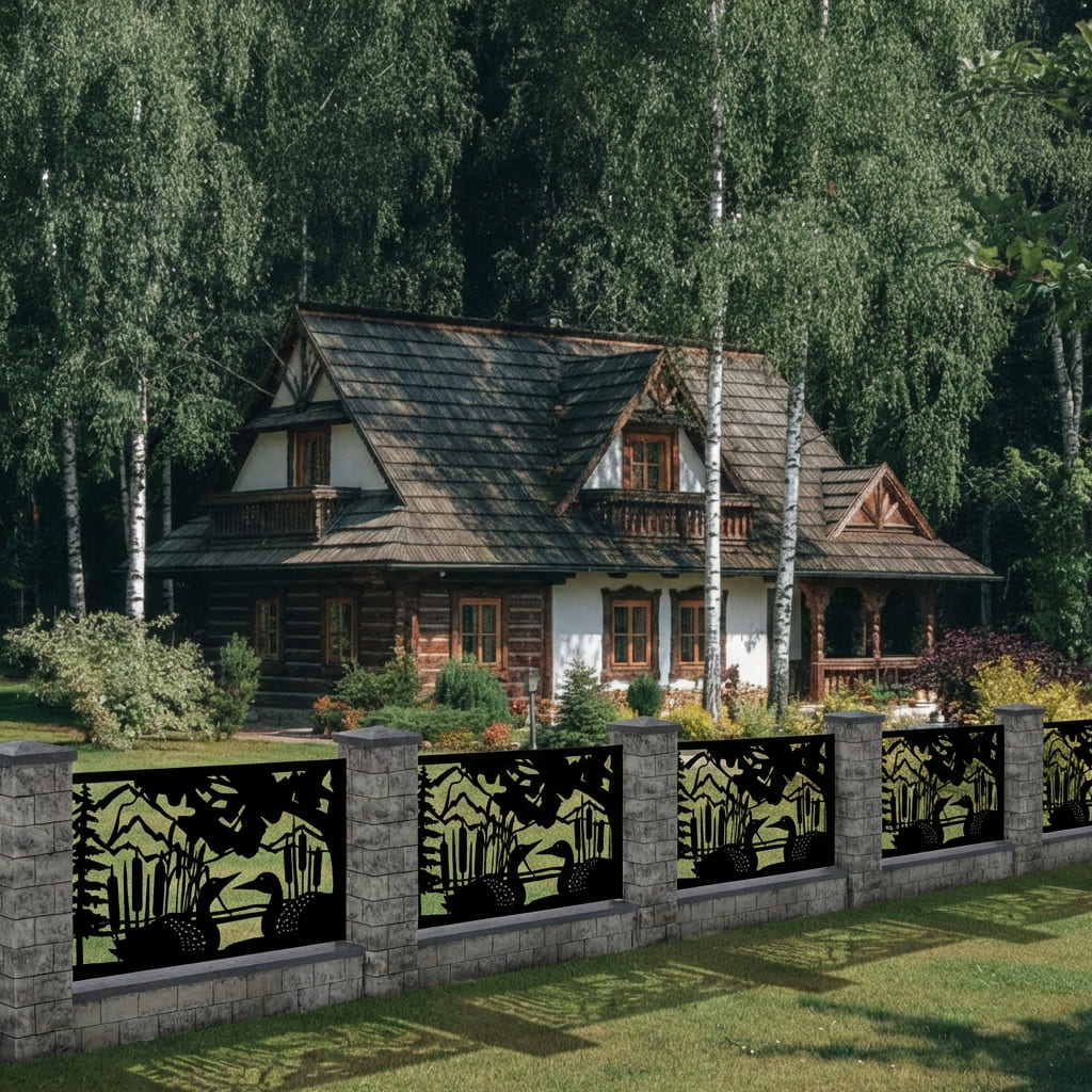 Panel Ogrodzeniowy Metalowy – Motyw Kaczki – Wzór "2068" – Dekoracyjny Panel Przyrodniczy– Cięcie Laserowe na Wymiar