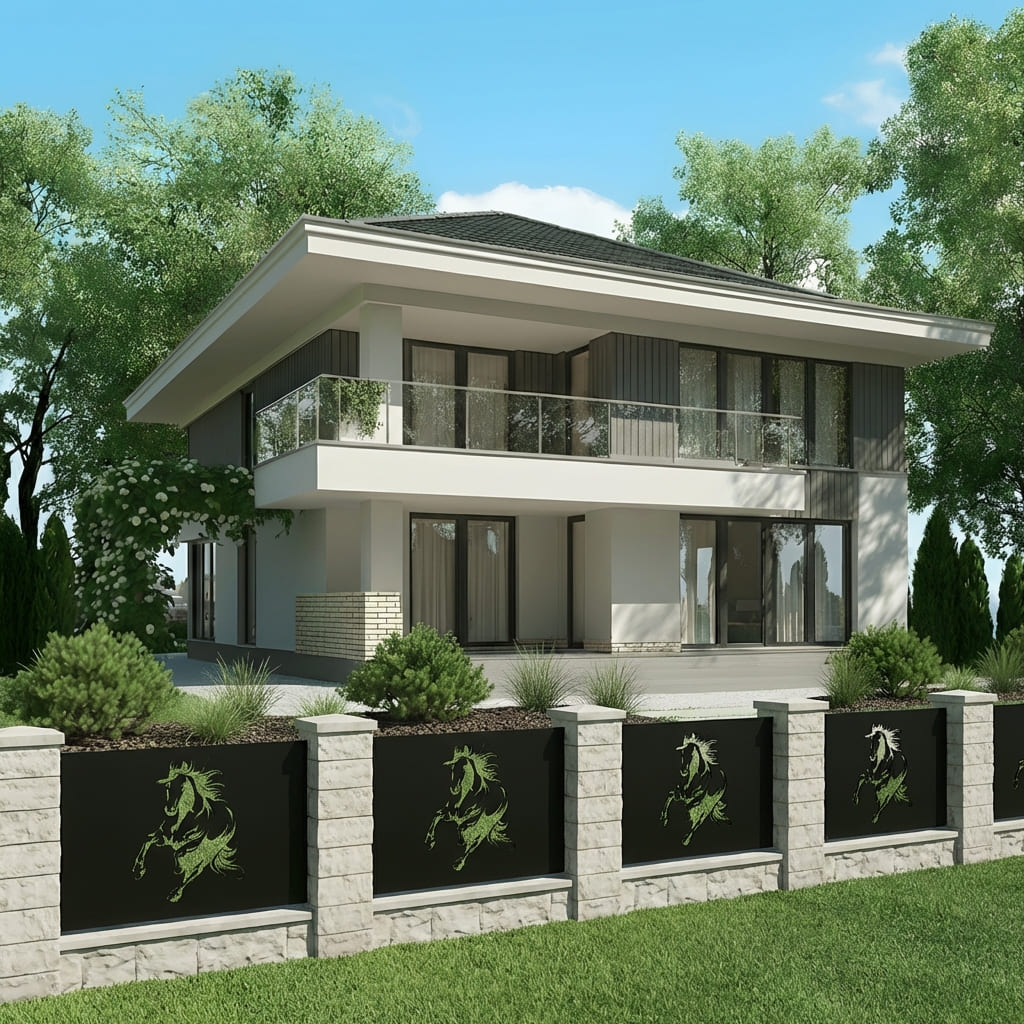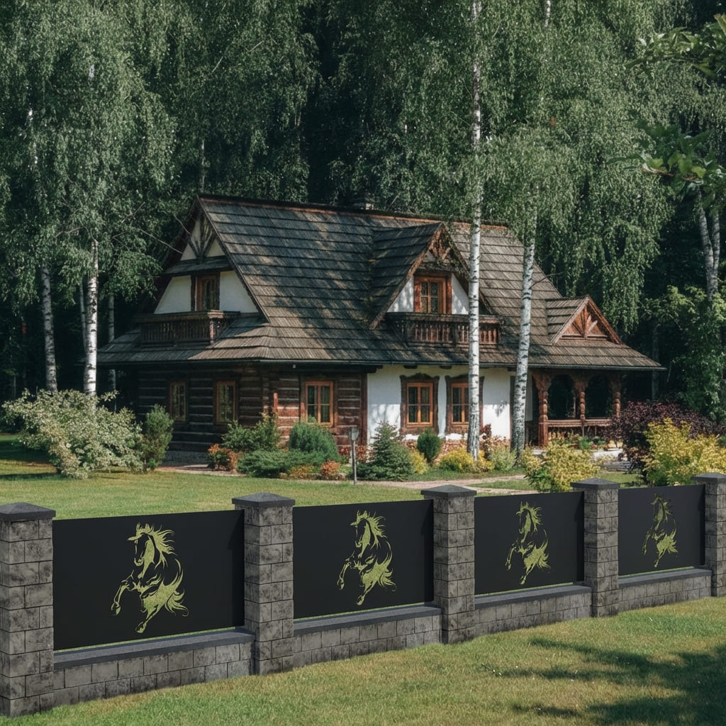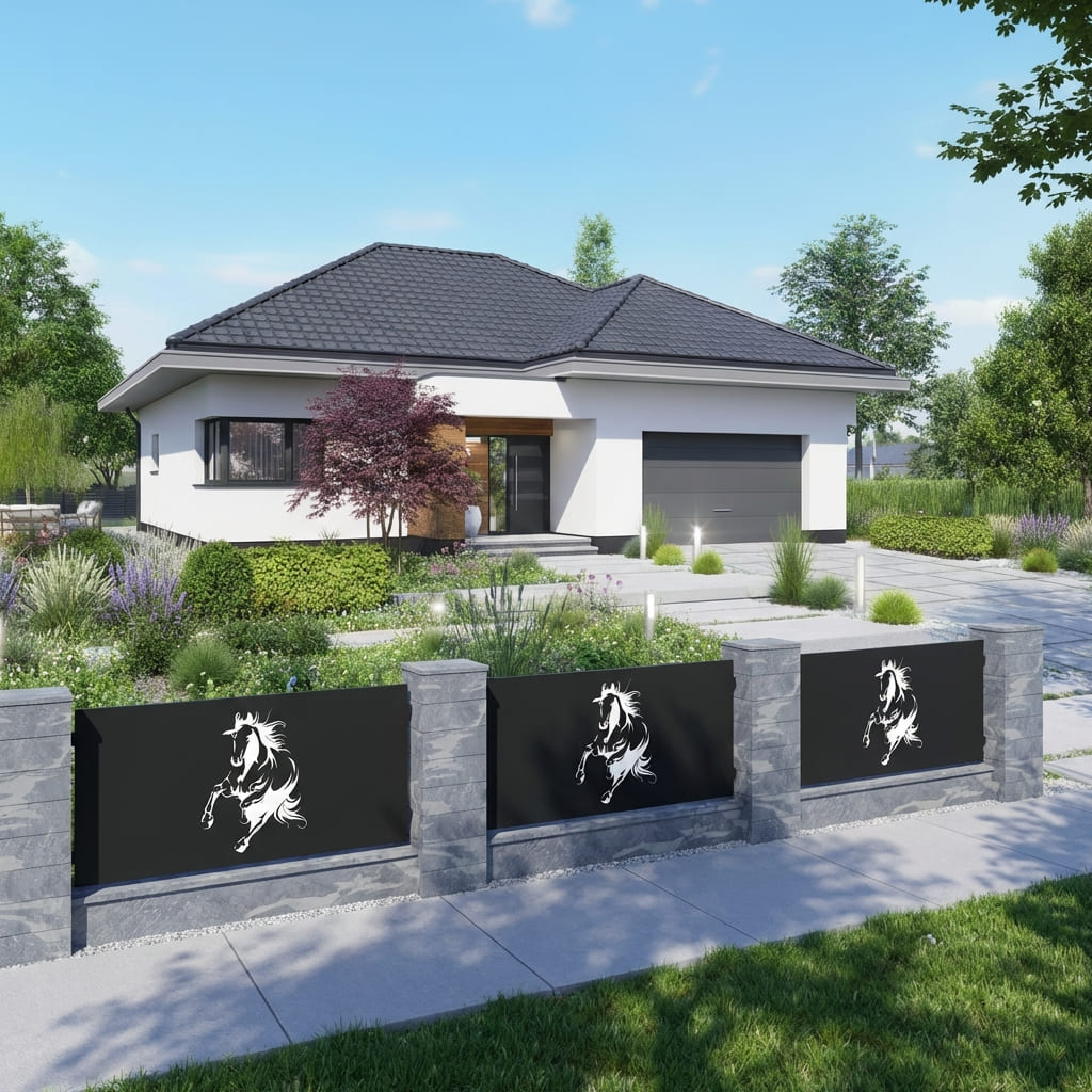Panel Ogrodzeniowy Metalowy – Motyw Konia – Wzór "2080" – Nowoczesne Przęsło Ażurowe – Na Wymiar