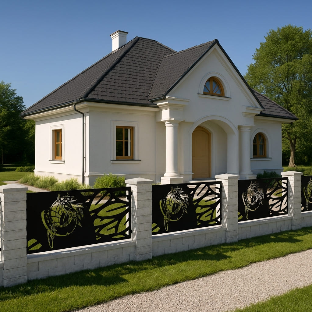 Dzięki naszemu wizualizatorowi możesz zobaczyć, jak wybrany panel będzie wyglądał w aranżacji Twojego domu. Możesz dodać zdjęcie swojego domu oraz wybrać murki, słupki i konkretne przęsło, aby wygenerować realistyczną wizualizację całego ogrodzenia. To pozwala ocenić efekt końcowy i upewnić się, że panel idealnie pasuje do przestrzeni, zanim podejmiesz decyzję o zamówieniu. Oferujemy też opcję własnego projektu (logo, napis, unikatowy motyw).