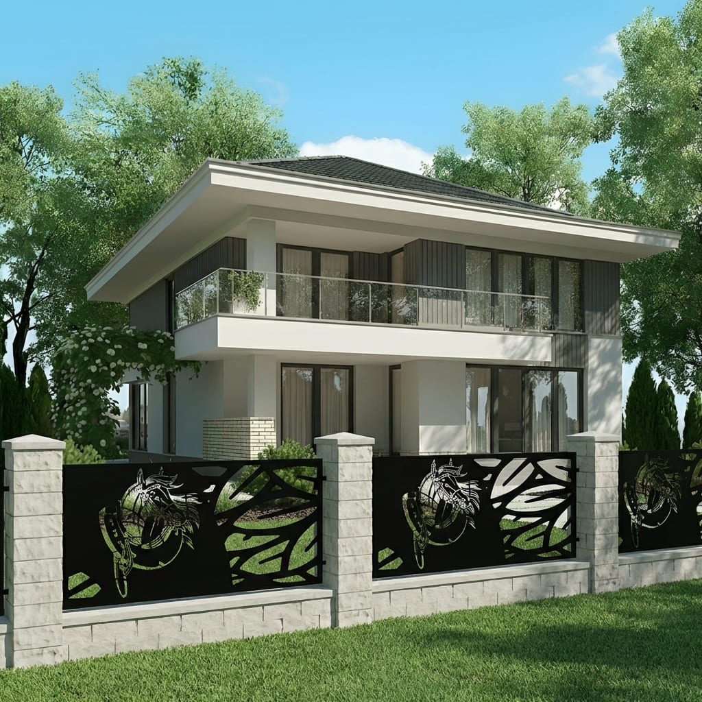 Nasze panele ogrodzeniowe z motywami zwierzęcymi wprowadzają do przestrzeni naturalną dynamikę i niepowtarzalny styl. Sylwetki zwierząt tworzą kompozycję, która przyciąga wzrok i nadaje posesji artystyczny charakter. Idealnie sprawdzają się jako przęsła, balustrady, zabudowy tarasów oraz nowoczesne obrazy ścienne – łącząc estetykę z funkcjonalnością, prywatnością oraz trwałością na lata.