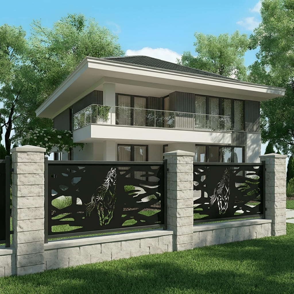 Panel Ogrodzeniowy Metalowy – Motyw Konia – Wzór "2083" – Nowoczesne Przęsło Ażurowe – Na Wymiar