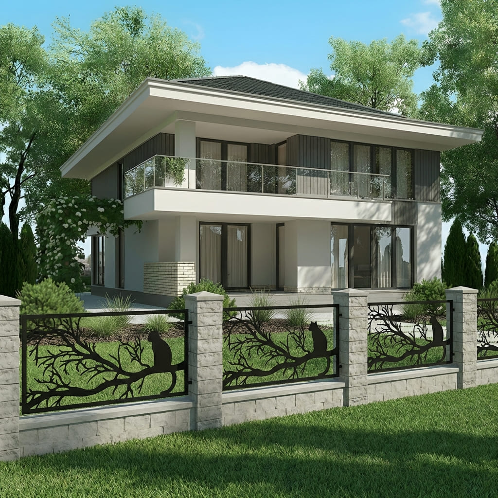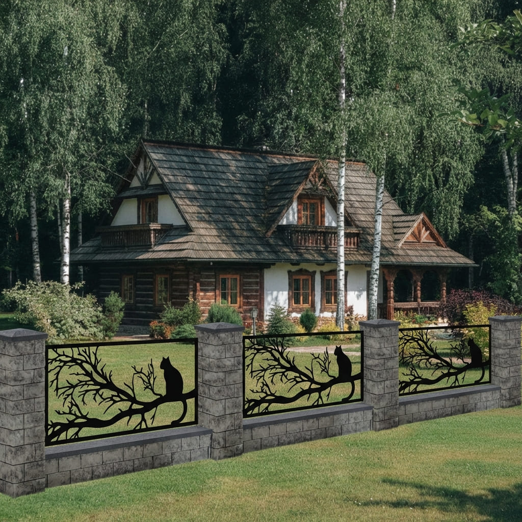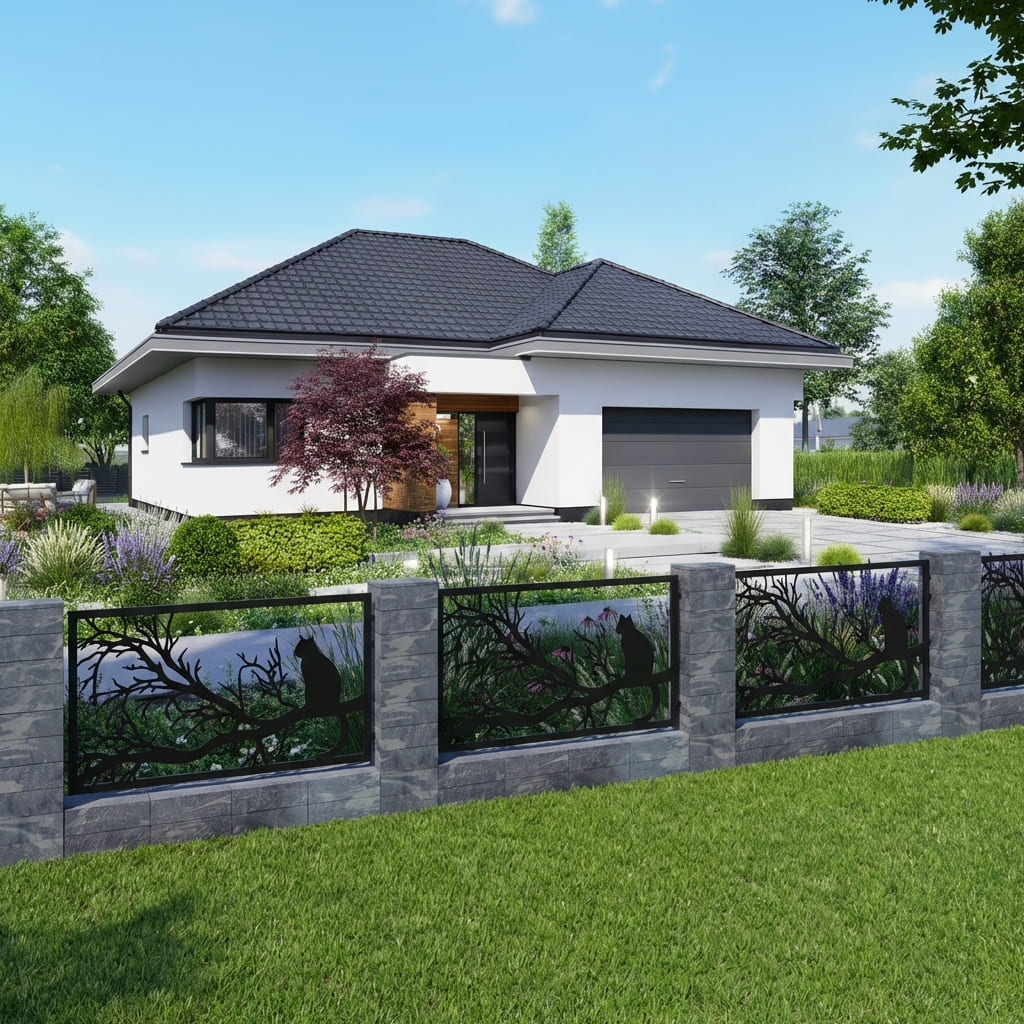 Panel Ogrodzeniowy Metalowy – Motyw Kot / Sylwetka Kota – Wzór "2047" – Nowoczesna Dekoracja – Na Wymiar