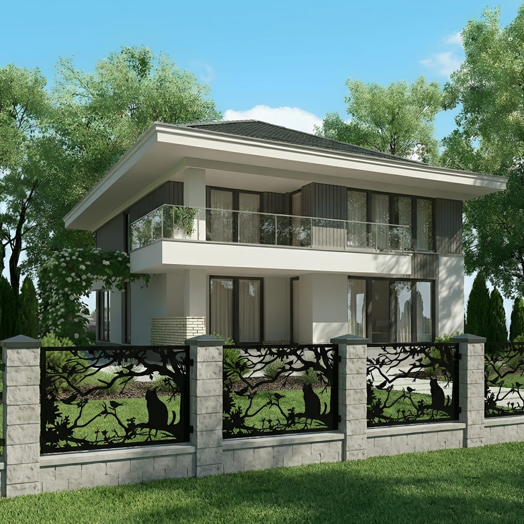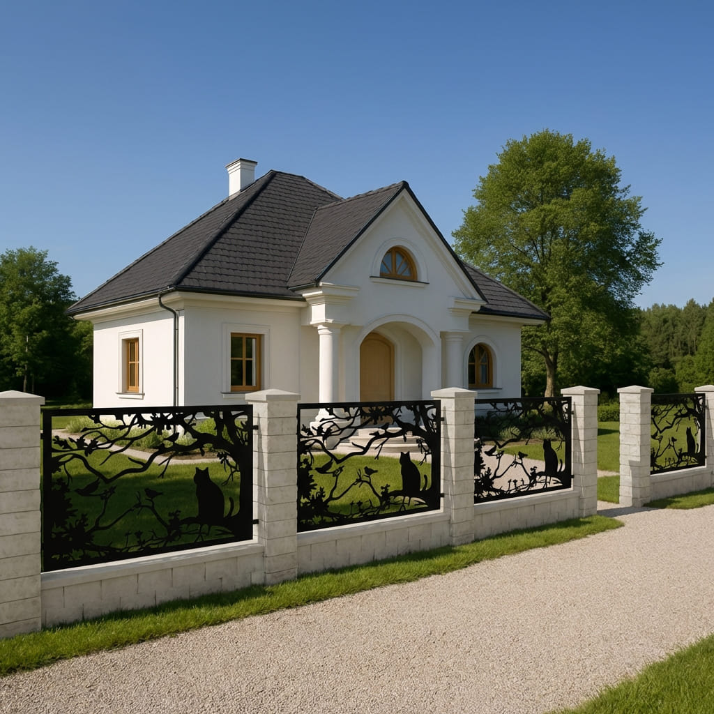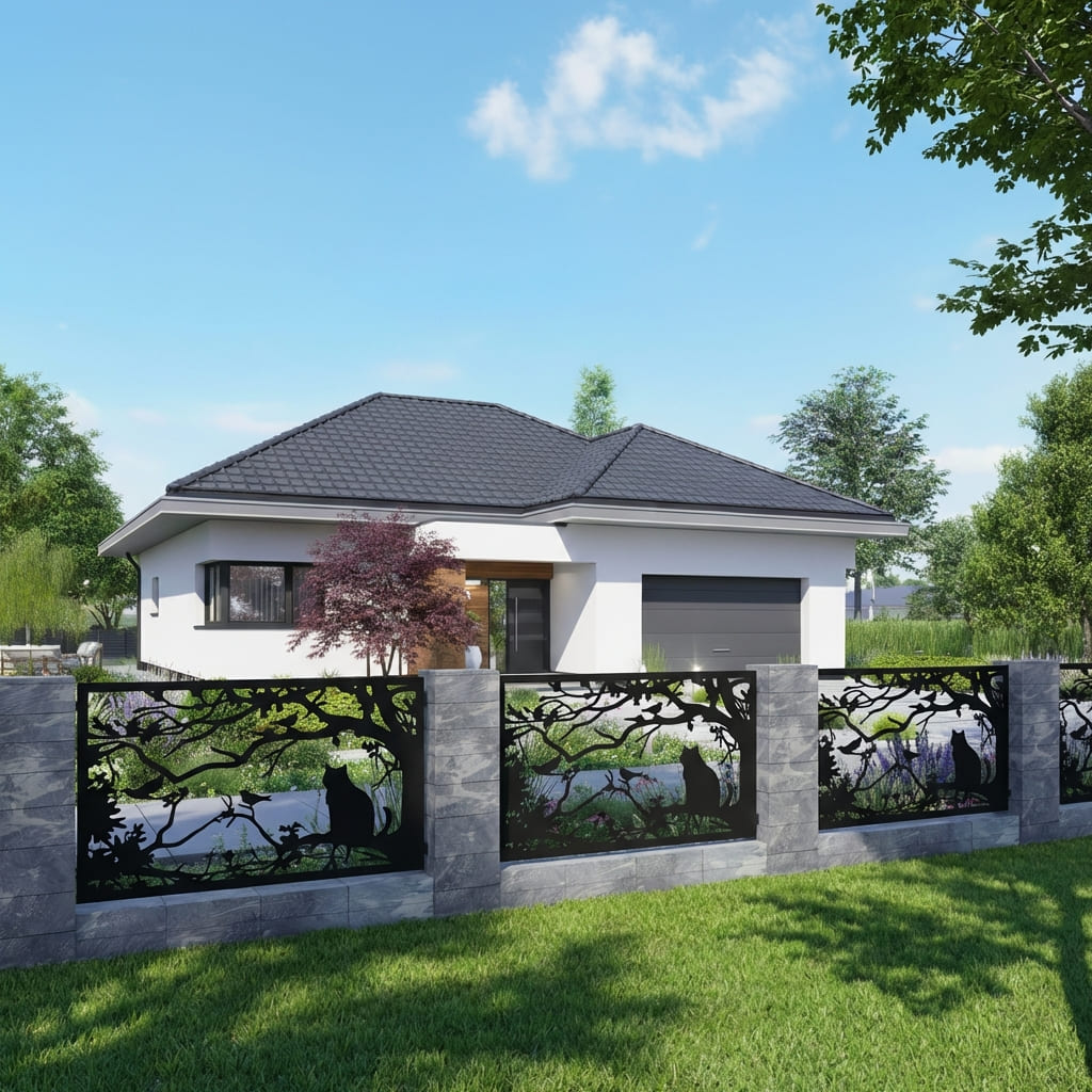Panel Ogrodzeniowy Metalowy – Motyw Kot / Sylwetka Kota – Wzór "2048" – Nowoczesna Dekoracja – Na Wymiar