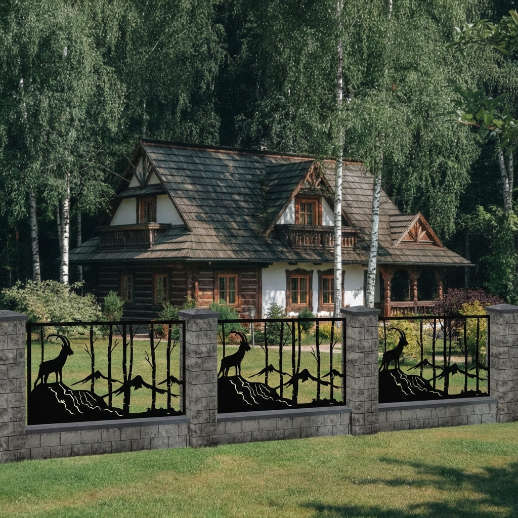 Panel Ogrodzeniowy Metalowy – Motyw Kozica Górska – Wzór "2028" – Styl Wysokogórski – Cięcie Laserowe na Wymiar