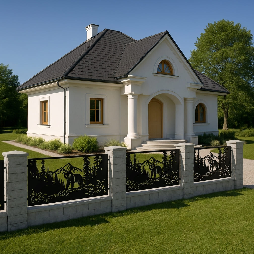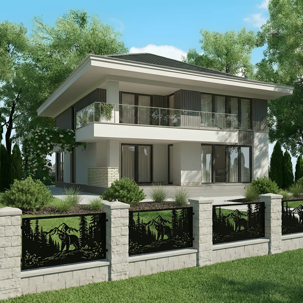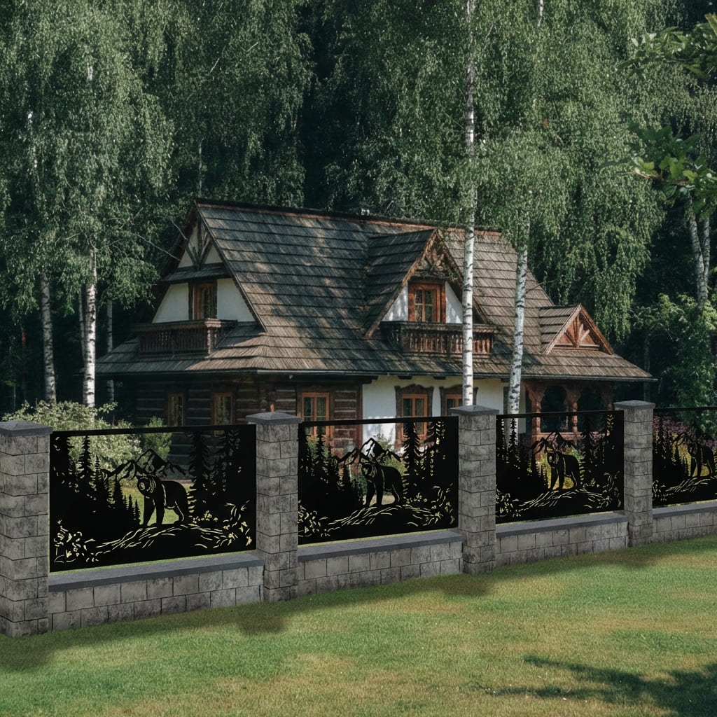 Panel Ogrodzeniowy Metalowy – Motyw Niedźwiedź – Wzór "2044" – Nowoczesny Design – Cięcie Laserowe na Wymiar