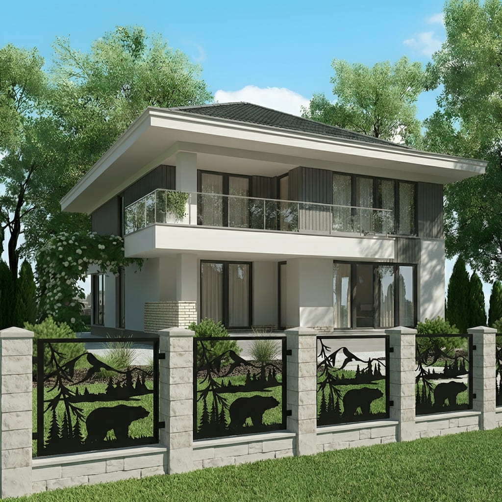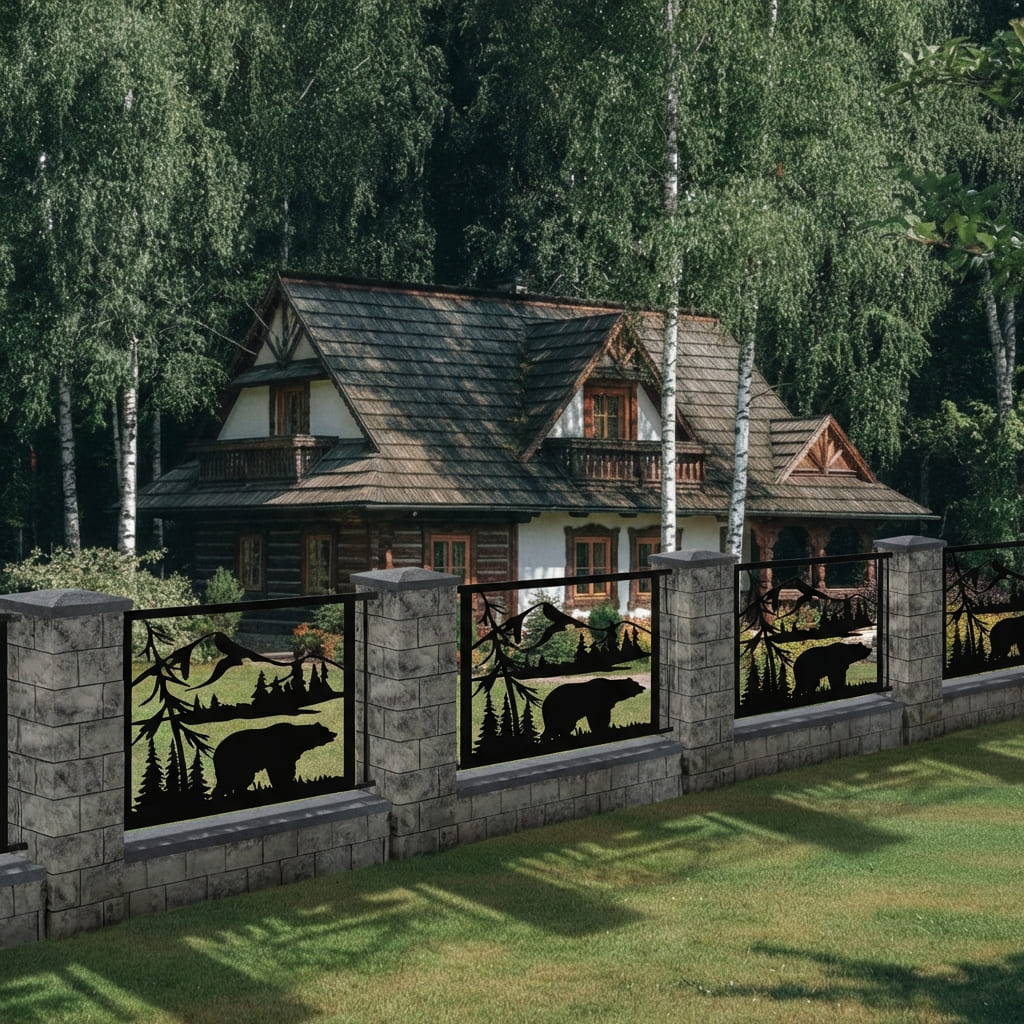 Panel Ogrodzeniowy Metalowy – Motyw Niedźwiedź – Wzór "2136" – Nowoczesny Design – Cięcie Laserowe na Wymiar