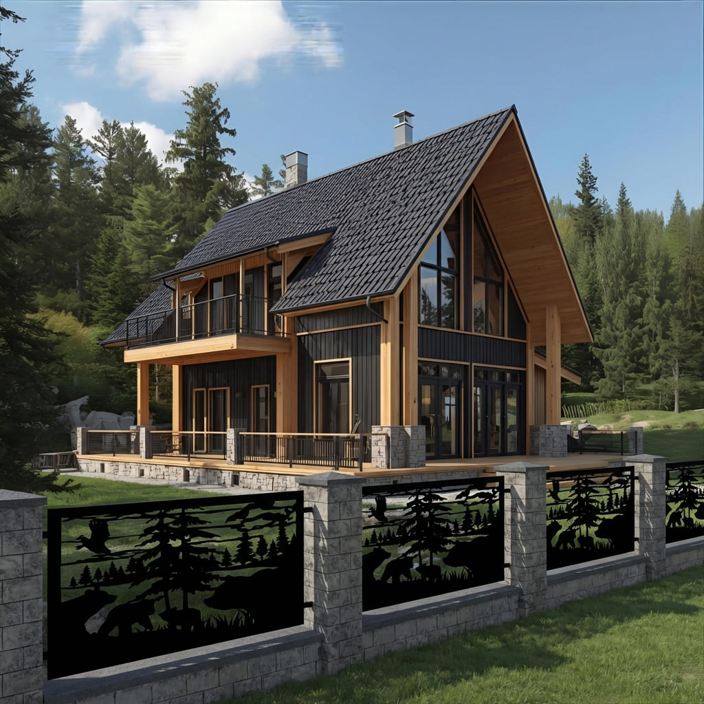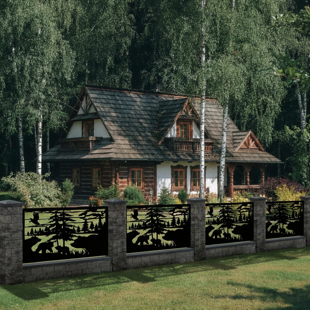 Panel Ogrodzeniowy Metalowy – Motyw Niedźwiedzie w Lesie – Wzór "2040" – Dzika Natura – Cięcie Laserowe na Wymiar