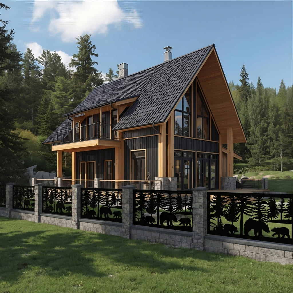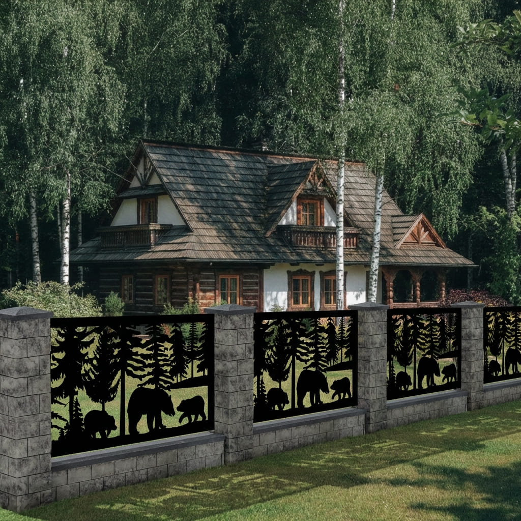 Panel Ogrodzeniowy Metalowy – Motyw Niedźwiedzie w Lesie – Wzór "2041" – Dzika Natura – Cięcie Laserowe na Wymiar