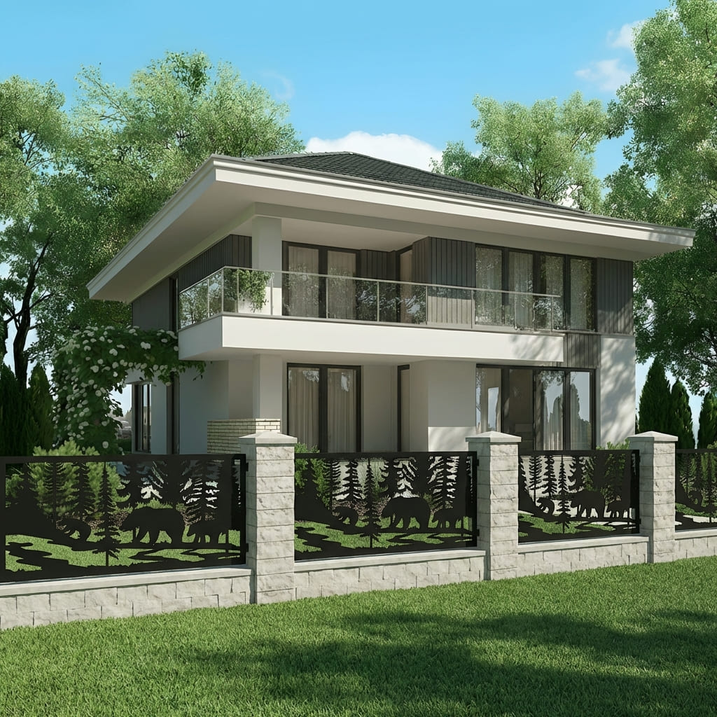 Nasze panele ogrodzeniowe z motywami zwierzęcymi wprowadzają do przestrzeni naturalną dynamikę i niepowtarzalny styl. Sylwetki zwierząt tworzą kompozycję, która przyciąga wzrok i nadaje posesji artystyczny charakter. Idealnie sprawdzają się jako przęsła, balustrady, zabudowy tarasów oraz nowoczesne obrazy ścienne – łącząc estetykę z funkcjonalnością, prywatnością oraz trwałością na lata.
