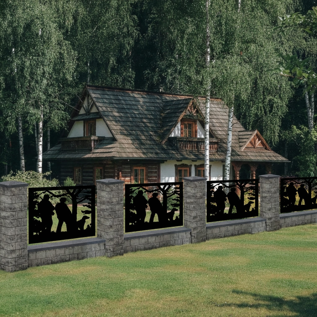Panel Ogrodzeniowy Metalowy – Scena Myśliwska / Polowanie – Wzór "2141" – Tradycyjny Motyw Łowiecki – Cięcie Laserowe na Wymiar