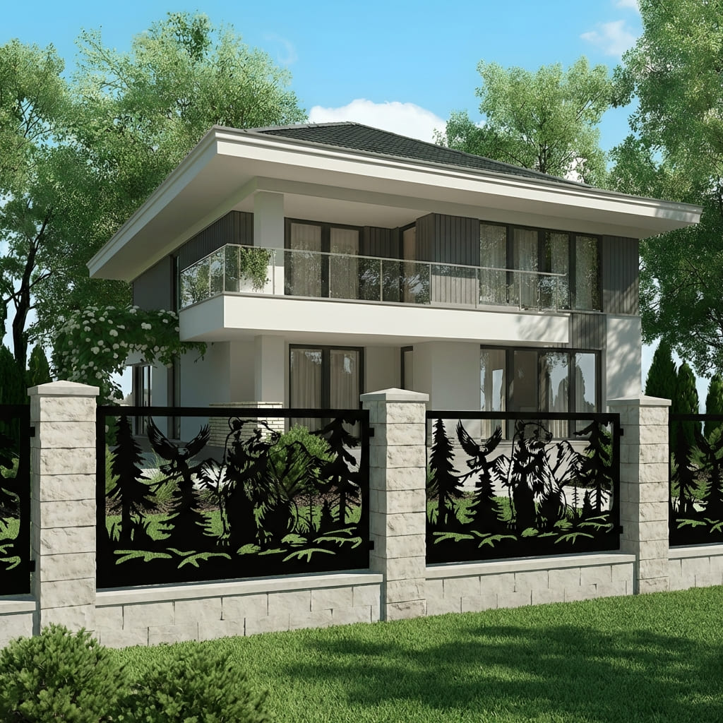 Nasze panele ogrodzeniowe z motywami zwierzęcymi wprowadzają do przestrzeni naturalną dynamikę i niepowtarzalny styl. Sylwetki zwierząt tworzą kompozycję, która przyciąga wzrok i nadaje posesji artystyczny charakter. Idealnie sprawdzają się jako przęsła, balustrady, zabudowy tarasów oraz nowoczesne obrazy ścienne – łącząc estetykę z funkcjonalnością, prywatnością oraz trwałością na lata.