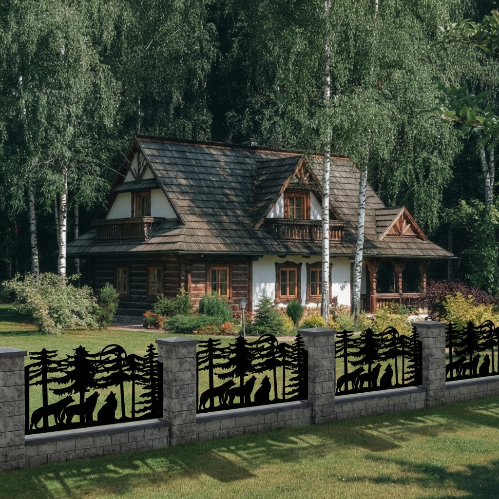 Panel Ogrodzeniowy Metalowy – Wzór "2156" (Zew Północy) – Motyw Wilki w Lesie – Kolekcja Natura – Na Wymiar