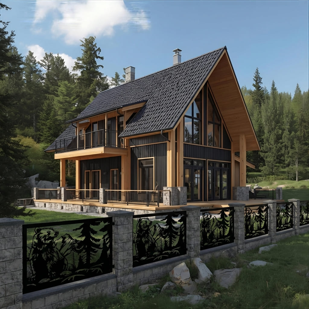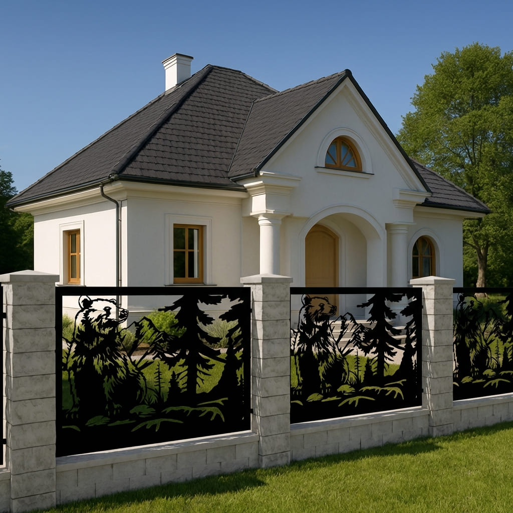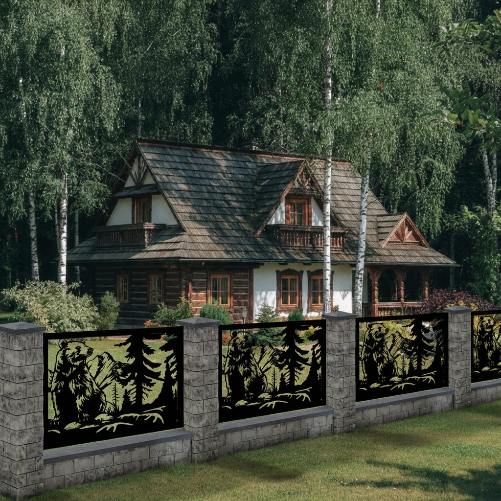 Panel Ogrodzeniowy Metalowy – Wzór "2168" (Niedźwiedzia Góra) – Motyw Niedźwiedź w Górach – Kolekcja Natura – Na Wymiar