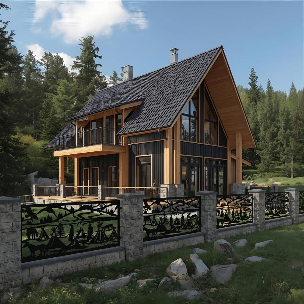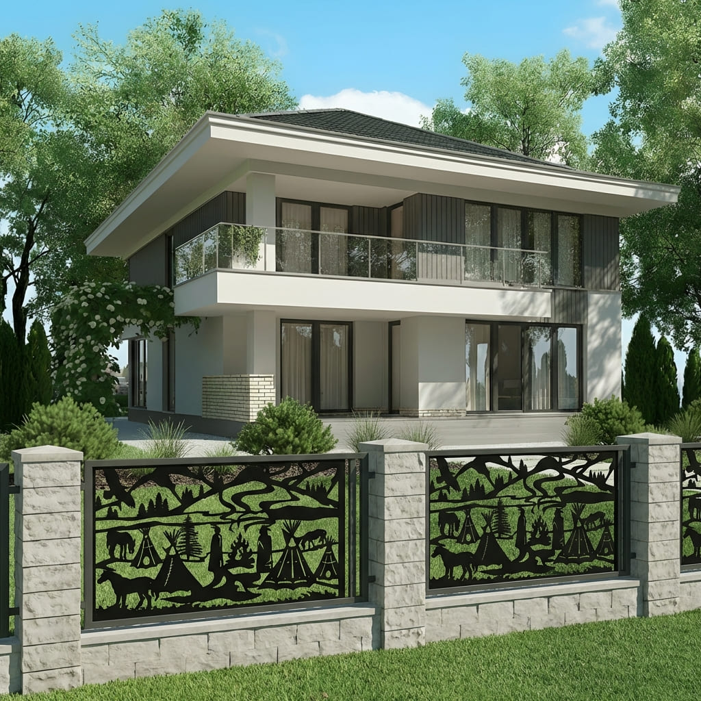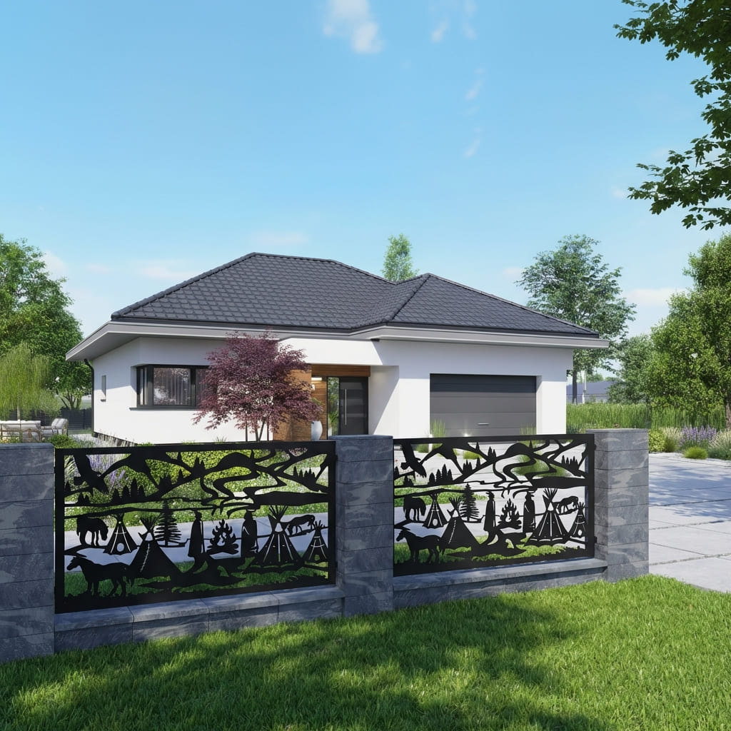 Panel Ogrodzeniowy Metalowy – Wzór "3032" (Dziki Zachód) – Motyw Wioska Indiańska – Kolekcja Natura – Na Wymiar
