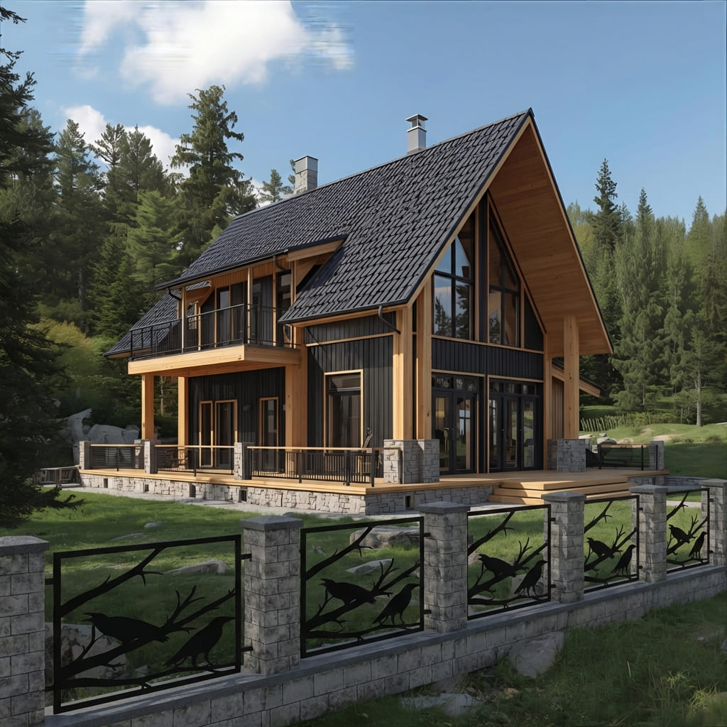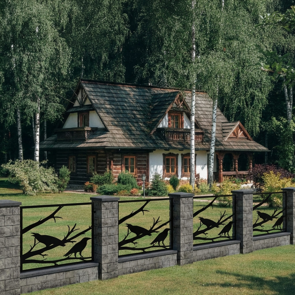Panel Ogrodzeniowy Metalowy – Wzór "3056" (Głos Natury) – Motyw Kruki na Gałęzi – Kolekcja Natura – Na Wymiar