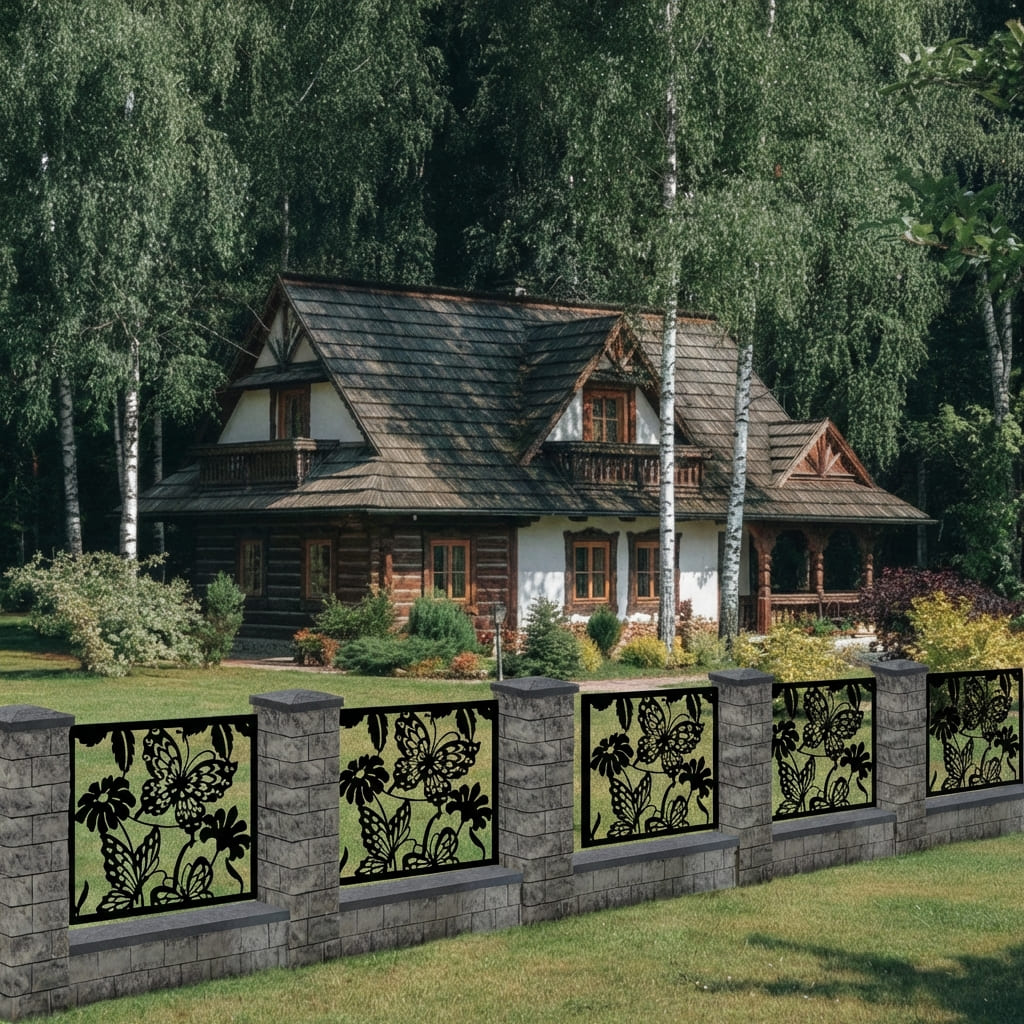 Panel Ogrodzeniowy Metalowy – Wzór "3059" (Letni Ogród) – Motyw Motyle i Kwiaty – Kolekcja Natura – Na Wymiar
